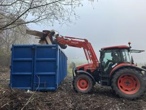 Pracovníci obce naložili odpad do pristaveneho kontajnera spoločnosti Kronospan s.r.o. Zvolen. Zhodnotenie a recykláciu tohto odpadu zabezpečí spoločnosť Kronospan na základe zmluvy, ktorú sme uzatvorili pre tento účel.